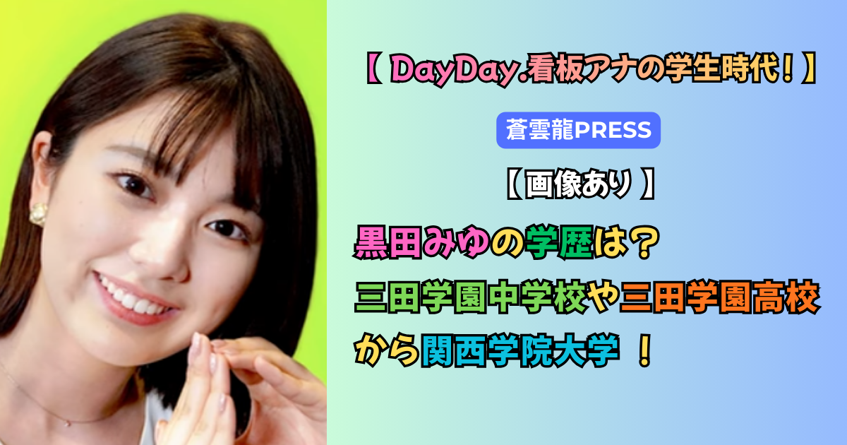 今回の記事では、黒田みゆさんの「学歴」にスポットを当て、地元の小学校から名門・三田学園、そして関西学院大学へと至る華麗なる軌跡を徹底解説します。