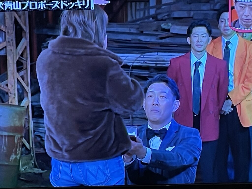 しかし、最終的には青山さんが何日も猛練習したフラッシュモブを大勢のバックダンサーと共に披露した後、本気で婚約指輪を差し出し、ガチプロポーズであることが明かされるという構図になっていました。
