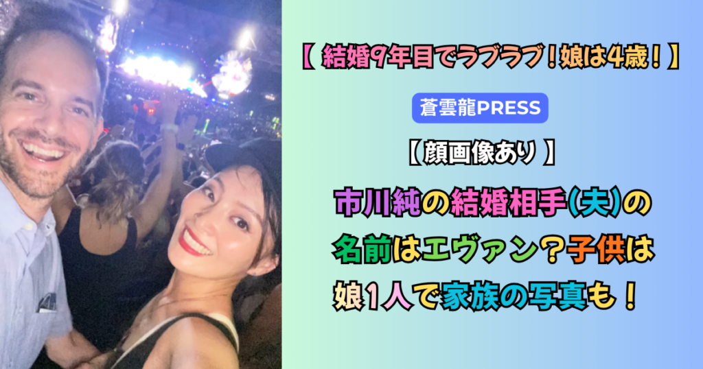 【顔画像】市川純の結婚相手(夫)の名前はエヴァン?子供は娘1人で家族の写真も!