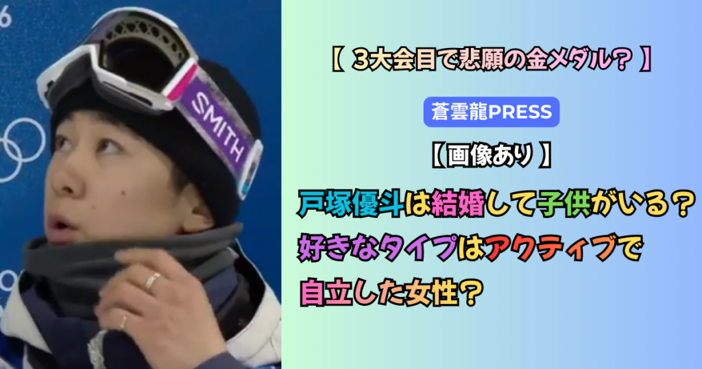スノーボードハーフパイプの日本代表で、平昌五輪出場からミラノ・コルティナ五輪まで3大会連続のベテラン、戸塚優斗(とつか ゆうと)さん。 いつ、どこで、どんな女性と付き合っているのか?結婚や子供の有無がファンの間で気になるところ。 今回の記事...