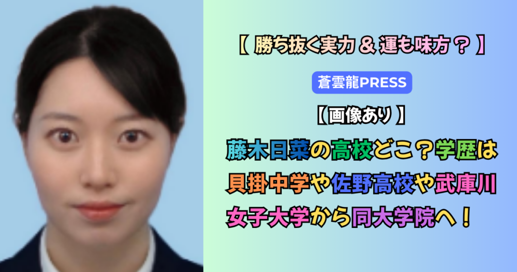 藤木日菜の高校どこ?学歴は貝掛中学や佐野高校や武庫川女子大学から同大学院へ!